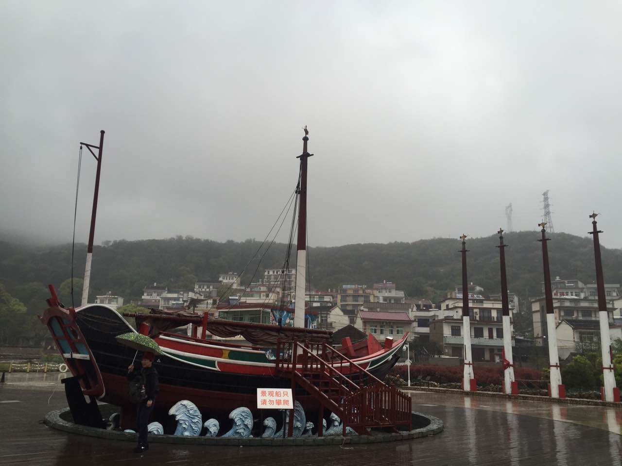 第一站旅途是嵊泗海洋文化陳列館和大悲山。在文化館里,展示了嵊泗列島特有的一些生活和捕魚文化,還有當(dāng)?shù)刂臐O民畫,色彩鮮艷十分漂亮,讓我們增強了不少閱歷。再往上走,便是大悲山觀景臺。受天氣的影響,雖然霧氣騰騰,但一路過去,在那空中俯瞰山景,一條石徑坎于莽莽綠色之中,宛如綿延的飄帶。越往上就越精彩,山間云霧撩繞俯看人間煙火,好一幅大自然的絕妙圖景,讓人贊嘆,并以其獨特的風(fēng)光給我們留下了深刻的印象。