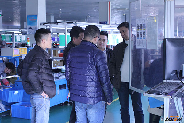 客戶一行參觀了我司的樣品間,沖壓車間、注塑車間、組裝車間、機裝車間,同時也參觀了實驗中心和倉庫。